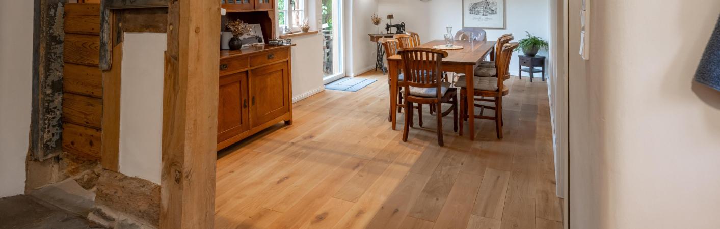 Unsere Massivholzdielen und Fertigparkettböden sprechen für sich selbst durch ihre Robustheit und Langlebigkeit. Sie verbinden auf eindrucksvolle Weise natürliche Schönheit mit zeitloser Eleganz. Dadurch verleihen sie jedem Raum eine besondere Atmosphäre, die zum Verweilen einlädt.